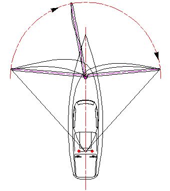 The mast can rotate 360 degrees, which is another unique feature of the SwingRig. With the help of a second sheet that is led forward of the mast SwingRigged boats can gybe like a wind surfer. This makes them easier to sail, particularly in heavy weather.