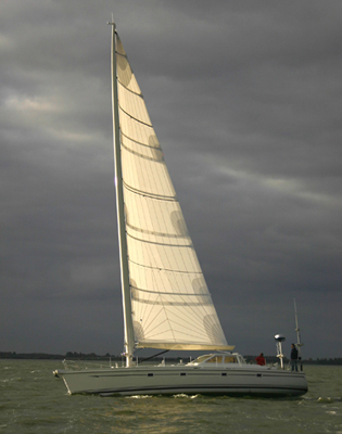 VPP calculations and sea trials with equal boats show that on broad reaches and runs the SwingRig reaches the same speeds as a sloop rig with spinnaker.